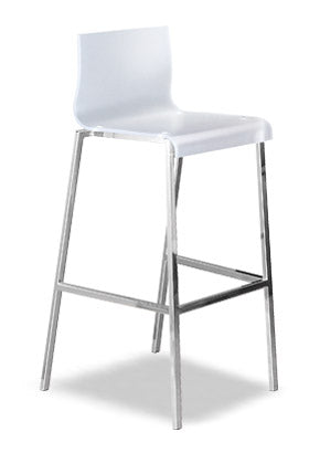 Kuadra barstool is lightweight and elegant with its methacrylate shell, it is available in a wide range of colors. The frame, visible through the transparence of the shell material, is fixed by small steel plates; it emphasizes the contrast between the solidity of the frame and the lightness of the shell.