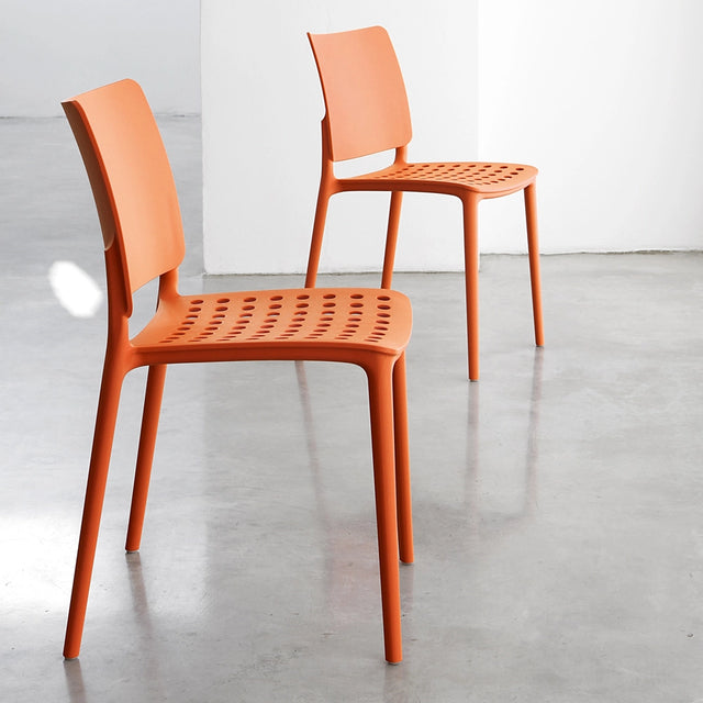 An innovative, dynamic stackable chair with a perforated, gas assisted, injection moulded polypropylene seat. Perfect for the outdoors or the contract sector. Available in a wide range of colors.