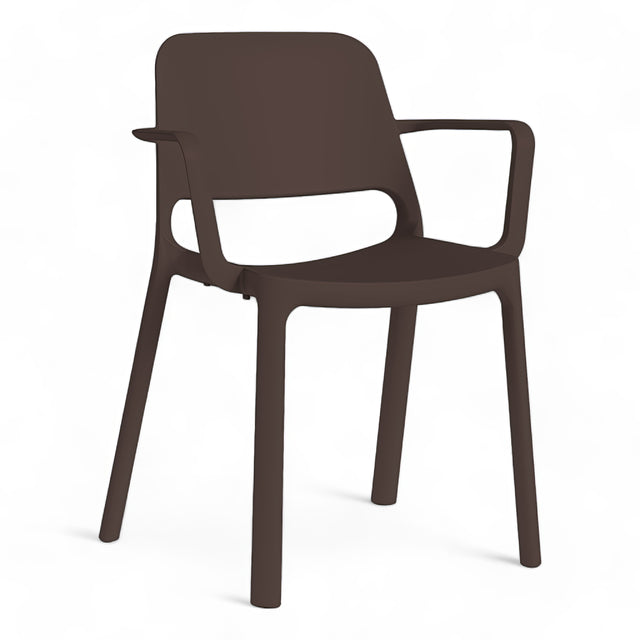 The Kyra Outdoor Arm Chair is the perfect seating solution for any outdoor setting. Designed to be durable and weather-resistant, this restaurant chair can withstand the elements while providing comfortable and stylish seating for your guests. With its stackable design, it's easy to store and makes for efficient use of space. Experience the benefits of a versatile and reliable outdoor chair with Kyra.