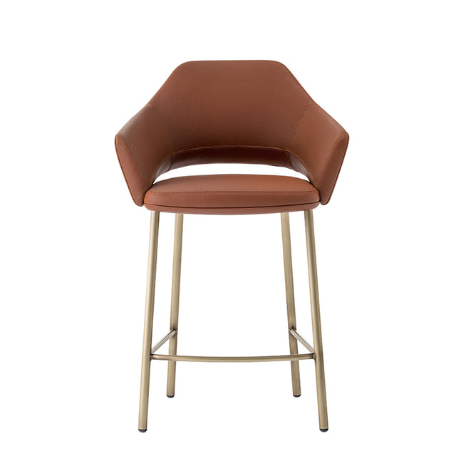 The elegance and the minimal outline of Vic stool draws inspiration from classic mid-century chairs. Seat and backrest with inner structure in steel, padded with polyurethane foam and upholstered in leather or fabric. The soft seat with polyurethane foam padding is supported by elastic belts, for absolute comfort. The legs are in tubular steel joined seamlessly with the carter, which can be upholstered to match the seat. Seat height 660 mm.