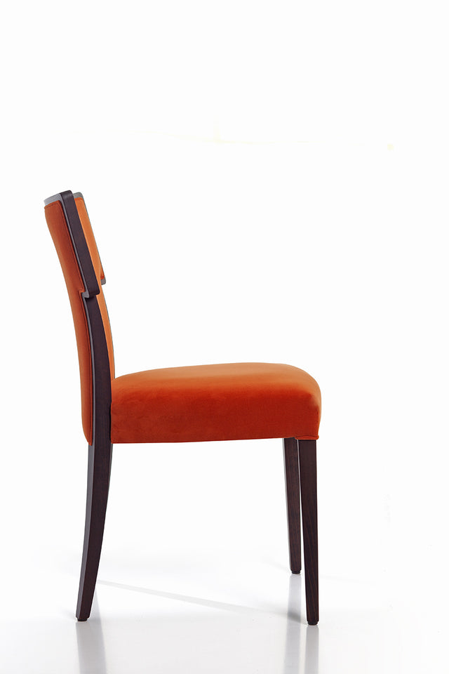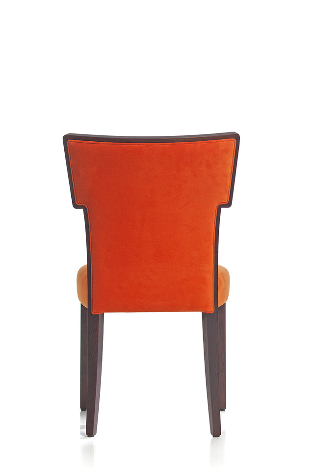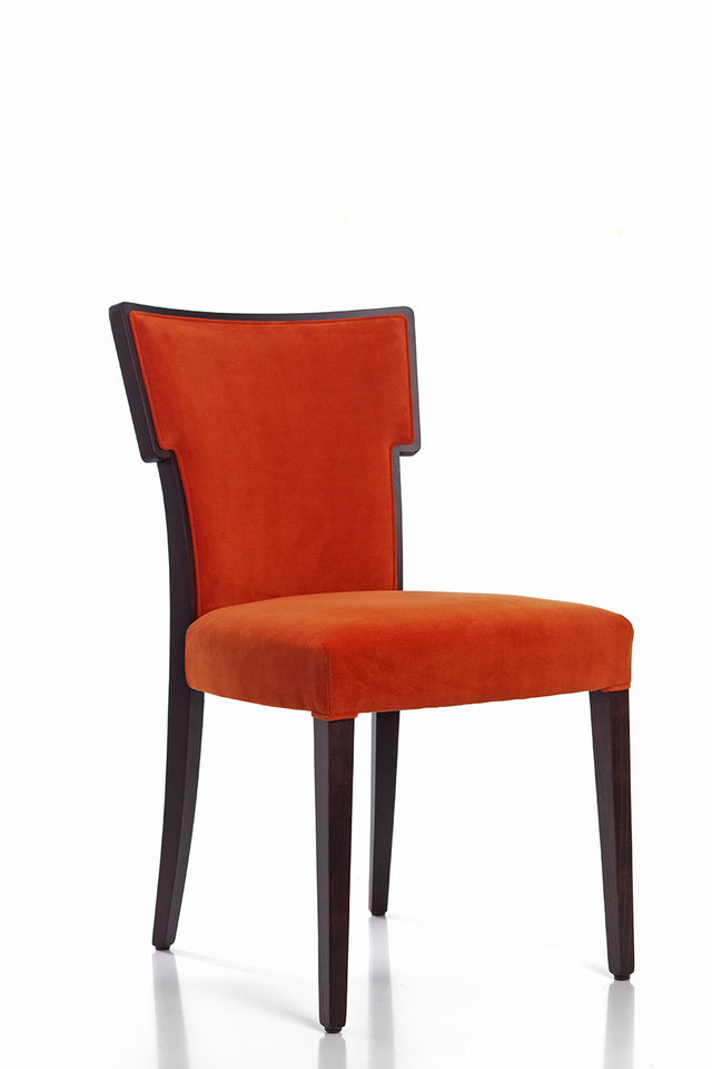 This fully upholstered, modern side chair features our unique interpretation of a classic design. Its distinctive seat-back adds both an additional aesthetic appeal as well as an extra touch of comfort to any setting.