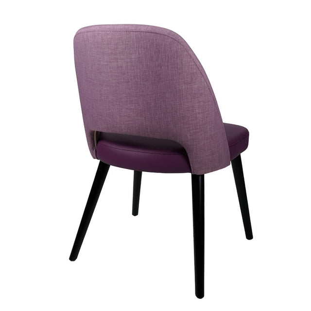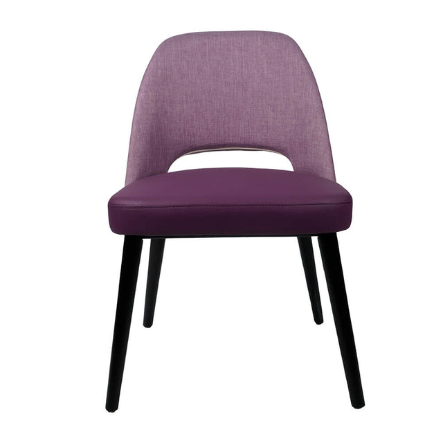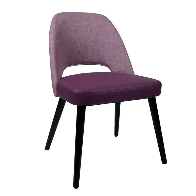 The Sun Hole upholstered dining chair is manufactured for its relaxing comfort, durability, and casually cool, modern vibe. This fully-upholstered wood chair is crafted upon stylish legs of solid wood, and is highlighted by its ample, distinctly shaped backrest with a fashionable, semicircular hole at the bottom.