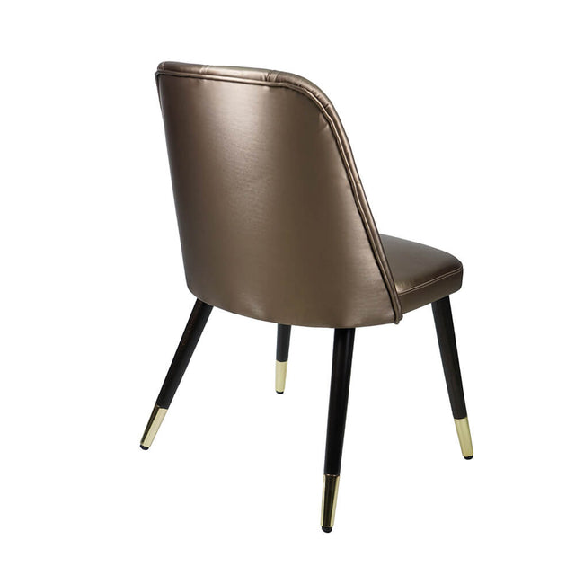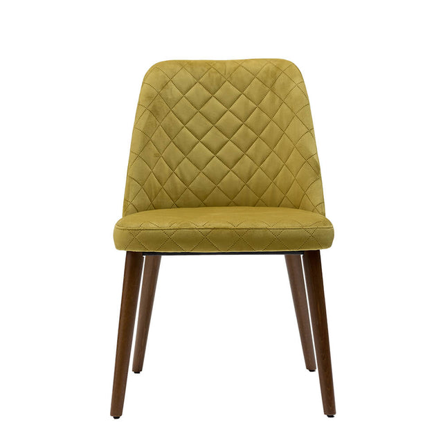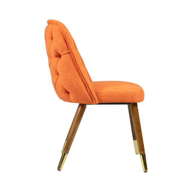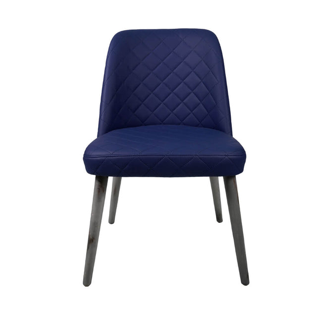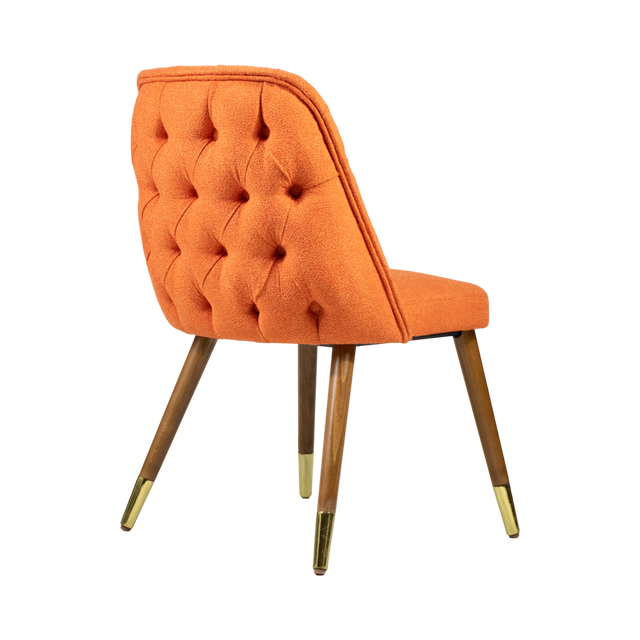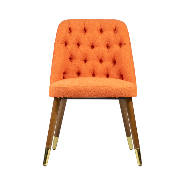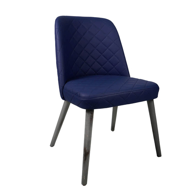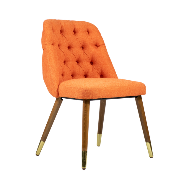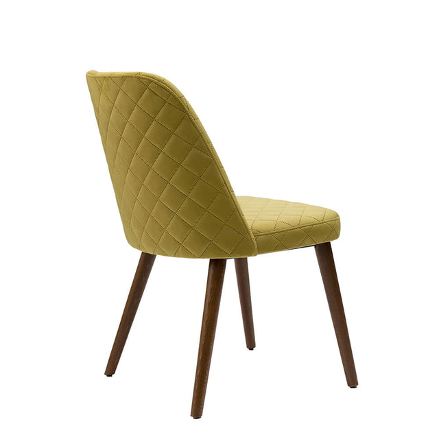 The Sun upholstered side chair is manufactured for its relaxing comfort, durability, and casually cool, modern vibe. This fully-upholstered dining chair is crafted upon stylish legs of solid wood, and is highlighted by its ample, distinctly shaped backrest with fashionable tufting or cross-hatch options.